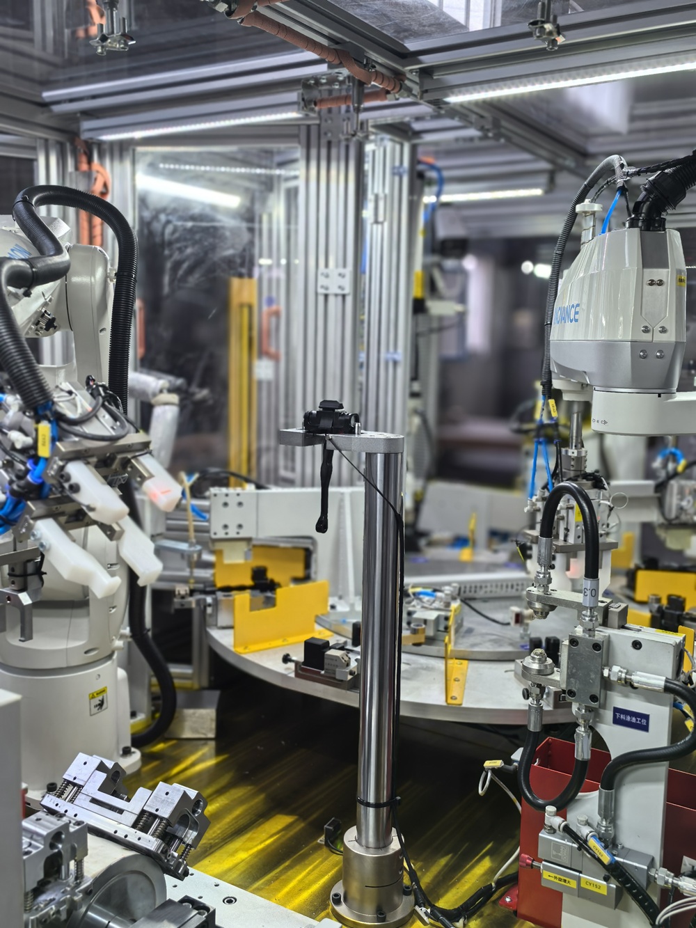 9. Automatic oil coating on the riveting surface and the laser-marked surface. The quantitative valve monitors the amount of grease injected.